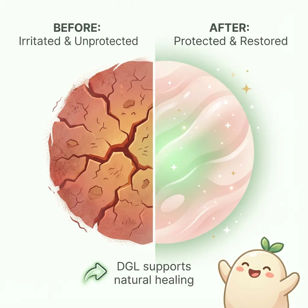 Studies show DGL increases the production of protective mucus and helps regenerate damaged tissue. One woman described it as "finally healing instead of just coping."